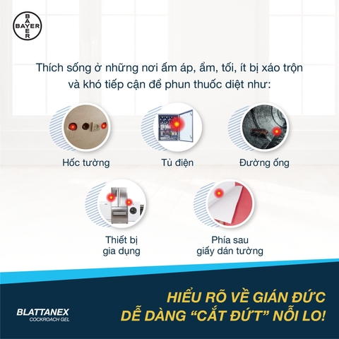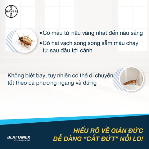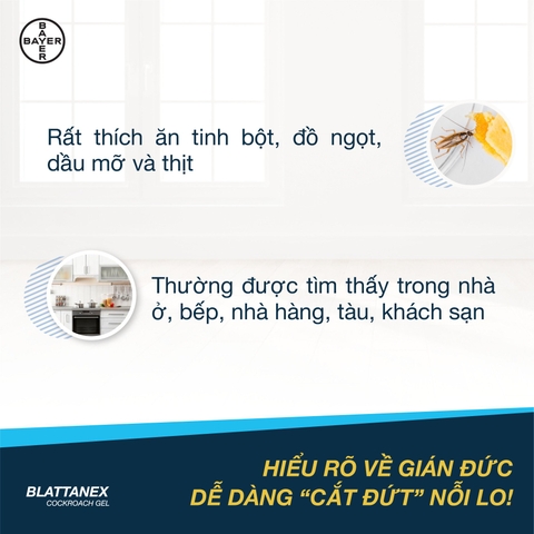 P/s: Được phát triển dựa trên sự hiểu biết sâu rộng thông qua quá trình nghiên cứu về đặc tính sinh học của loài gián, Gel diệt gián Blattanex có hiệu quả rất tốt trong việc kiểm soát và tiêu diệt các loại gián khác nhau, đặc biệt là loài gián Đức và gián Mỹ. Hãy lựa chọn Blattanex ngay hôm nay để loại bỏ nỗi phiền toái "lắm chân" này, bạn nhé!